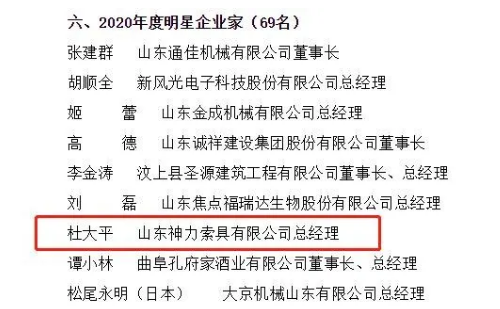 喜訊丨杜大平總經(jīng)理榮獲濟寧市“2020年度明星企業(yè)家”稱號