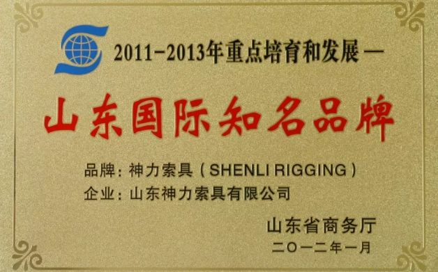 山東神力索具自成立以來,始終秉承科技創(chuàng)新、實(shí)施品牌戰(zhàn)略的發(fā)展理念,以優(yōu)質(zhì)產(chǎn)品和強(qiáng)勁創(chuàng)新能力奠定品牌戰(zhàn)略發(fā)展的基石,曾多次獲得相關(guān)榮譽(yù)。