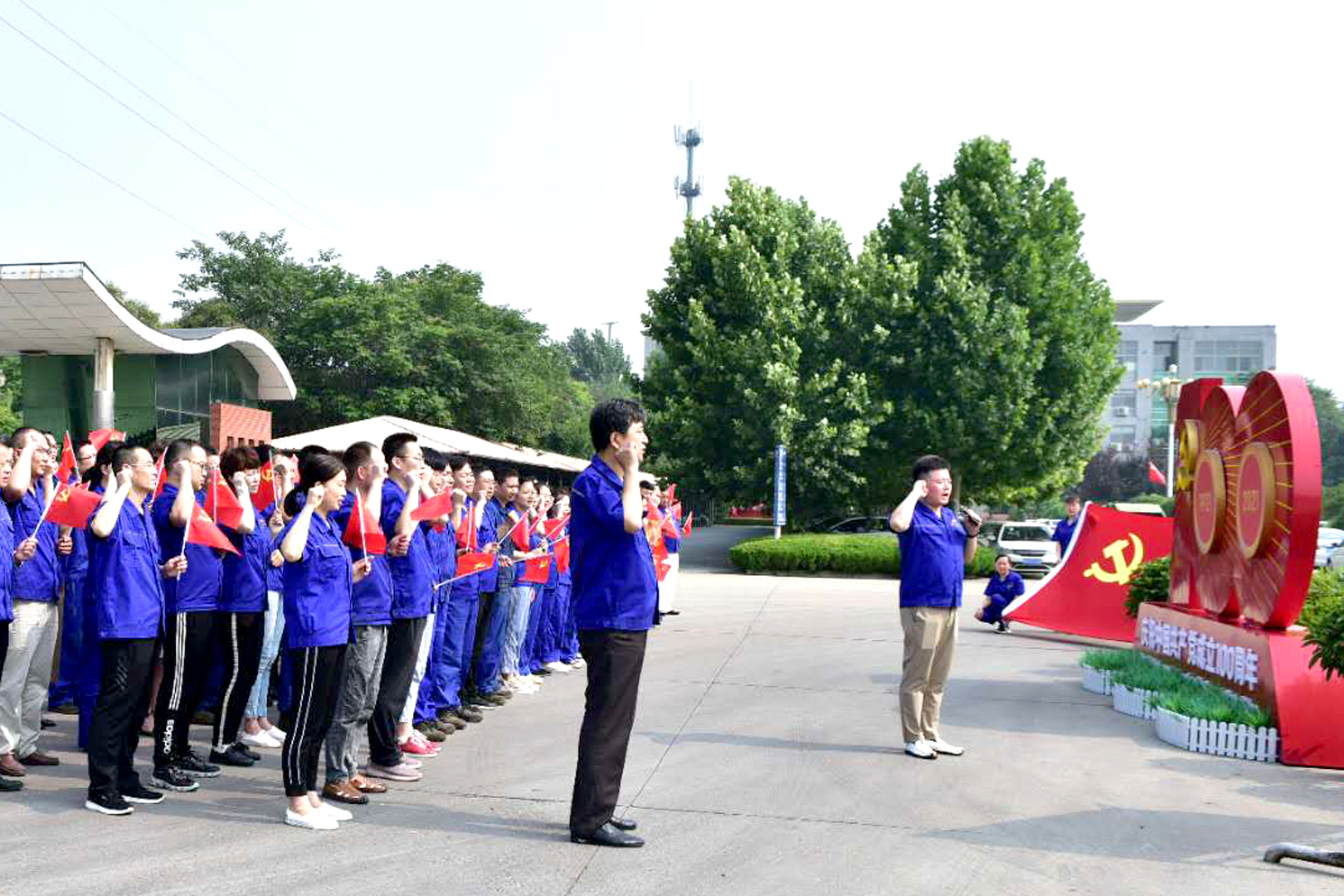 6月28日8時(shí)30分,公司組織百余名員工在公司廣場(chǎng)舉行了宣誓儀式,在總經(jīng)理杜大平的領(lǐng)誓下,面向鮮紅的黨旗,重溫入黨誓詞,再次用錚錚誓言,砥礪初心使命,進(jìn)一步堅(jiān)定聽黨話、跟黨走,接續(xù)奮斗的理想信念。