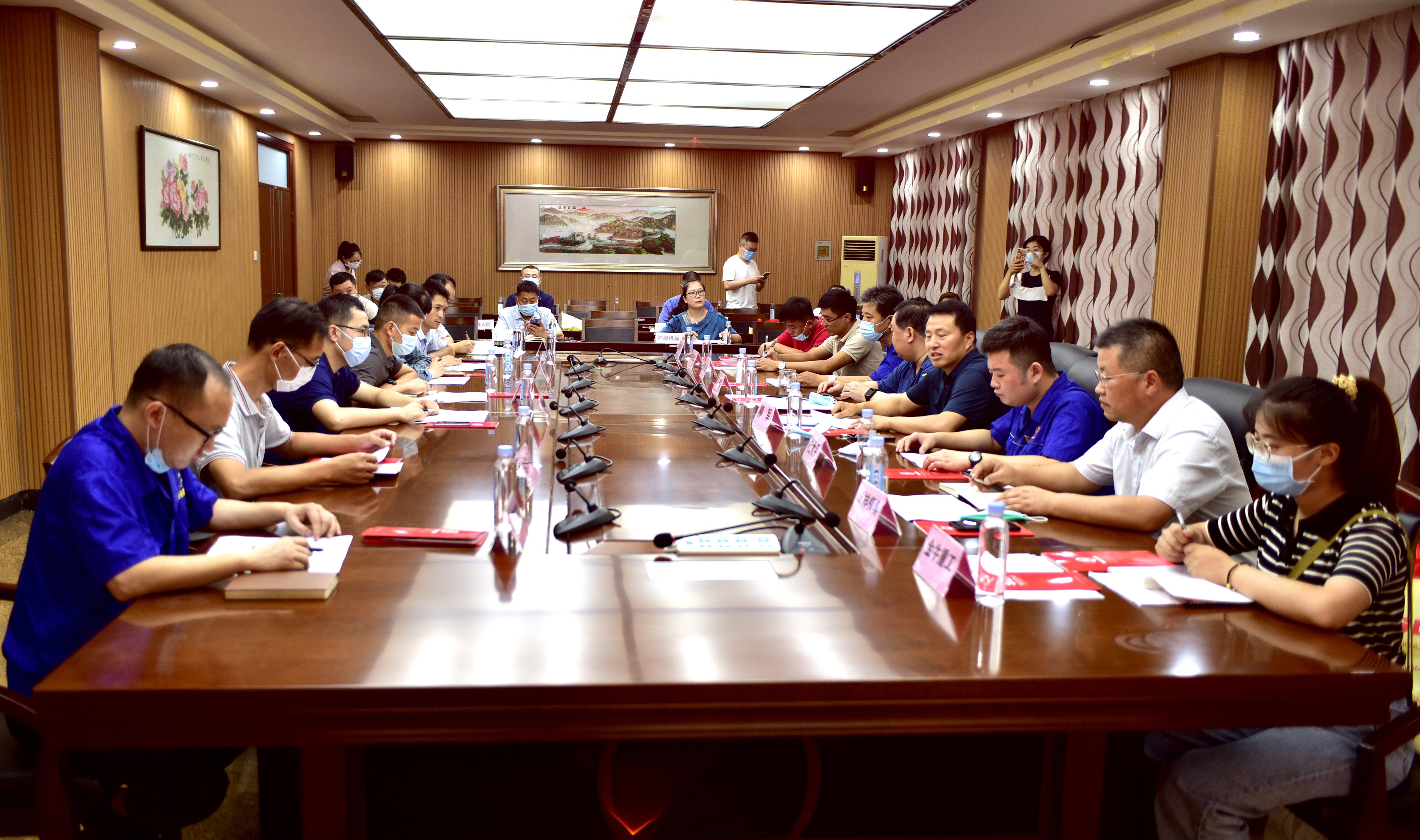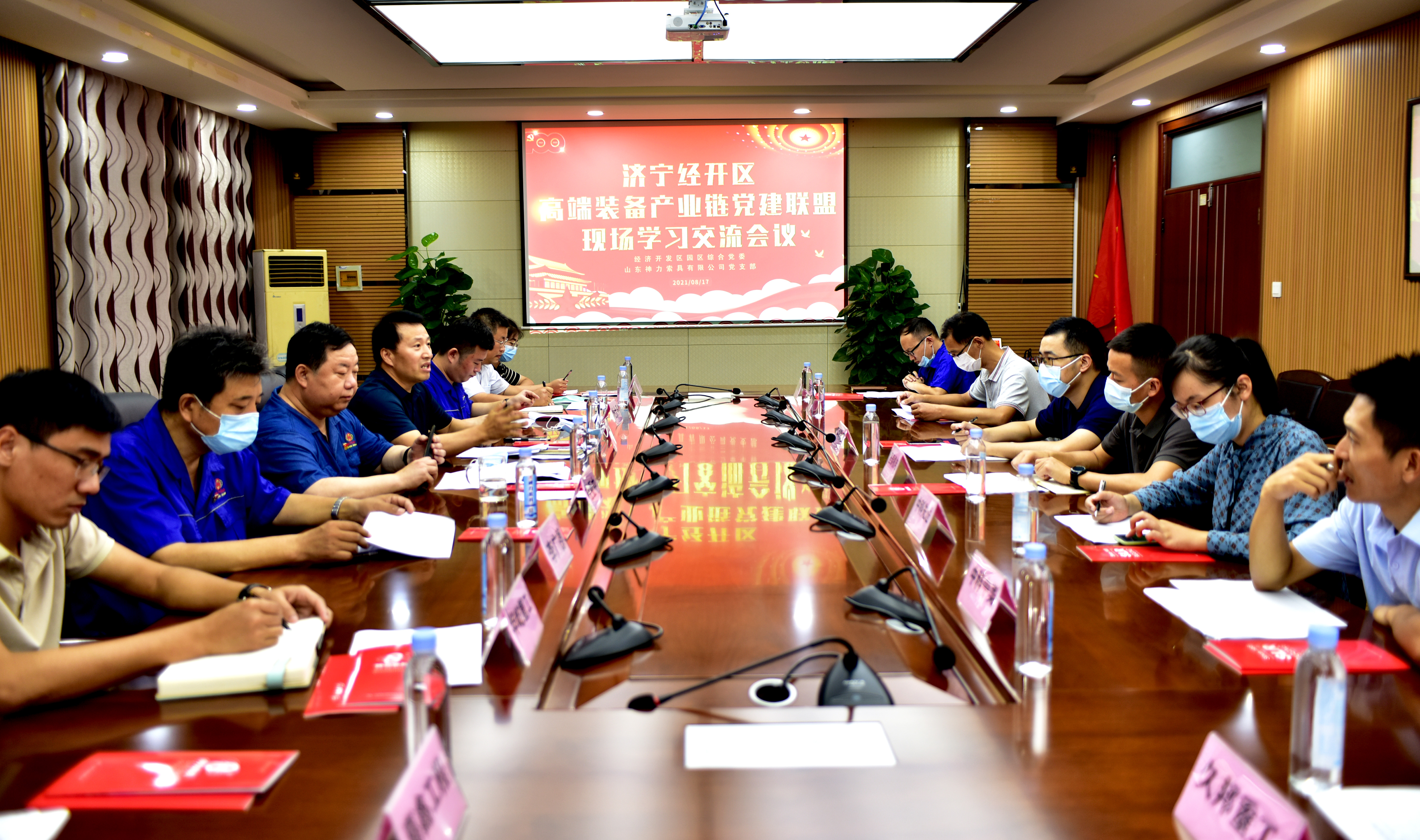 學習交流會由區(qū)組織部、園區(qū)綜合黨委有關領導、分管同志、濟寧經濟技術開發(fā)區(qū)高端裝備產業(yè)鏈黨建聯盟各企業(yè)單位的黨支部書記或企業(yè)負責人參會。園區(qū)綜合黨委書記柳軍同志主持會議。在參觀環(huán)節(jié),總經理杜大平向黨建聯盟各企業(yè)代表介紹了企業(yè)的發(fā)展及展望。