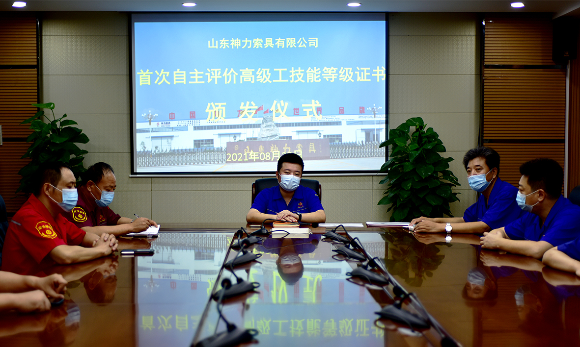 8月25日上午,山東神力索具有限公司首次企業(yè)自主評價高級工、中級工職工技能等級認定證書頒證儀式在公司會議室舉行。公司總經理杜大平、常務副總楊永海、工會主席李廣德、董事會秘書俞同磊、總經理助理馬兆申、人資部部長單春雪和相關分廠廠長、市助企攀登干部馮超等領導參加了本次證書頒發(fā)儀式。儀式由黨支部副書記、工會主席李廣德負責主持 。