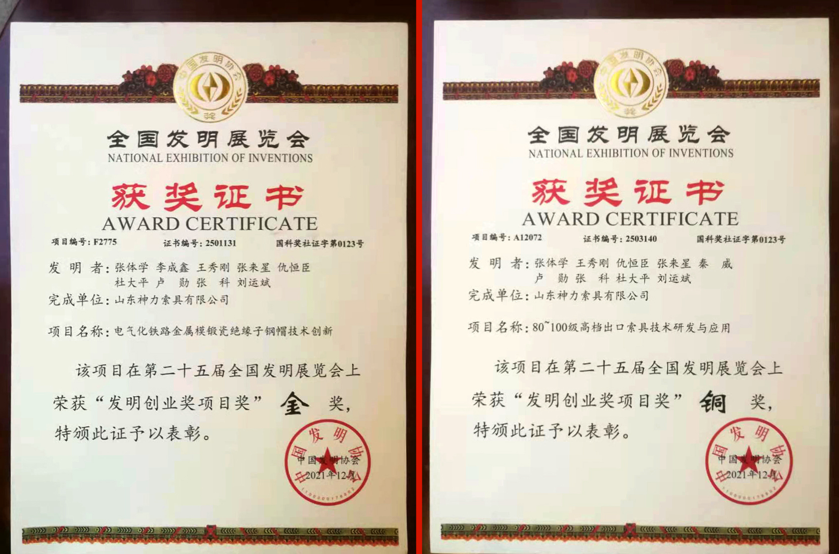 我公司80級(jí)、100級(jí)高檔出口索具及電氣化鐵路模鍛鋼帽的創(chuàng)新成果和產(chǎn)品,一經(jīng)亮相便得到了與會(huì)領(lǐng)導(dǎo)、專家的認(rèn)可。電氣化鐵路金屬模鍛絕緣子鋼帽技術(shù)創(chuàng)新項(xiàng)目榮獲“發(fā)明創(chuàng)業(yè)獎(jiǎng)項(xiàng)目獎(jiǎng)”金獎(jiǎng),80級(jí)~100級(jí)高檔出口索具技術(shù)創(chuàng)新與應(yīng)用項(xiàng)目榮獲“發(fā)明創(chuàng)業(yè)獎(jiǎng)項(xiàng)目獎(jiǎng)”銅獎(jiǎng)!